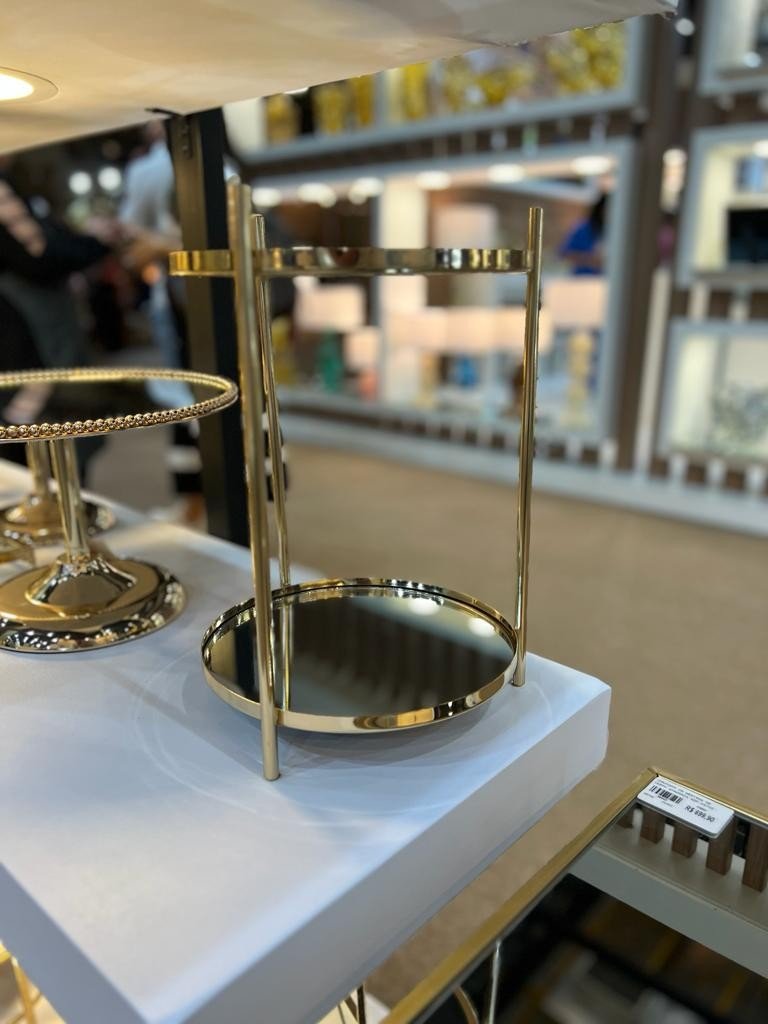 Porta doce duplo em metal com base espelhada.